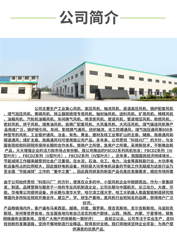 友情鏈接: 離心風(fēng)機(jī) 高溫風(fēng)機(jī) 軸流風(fēng)機(jī) 塑料風(fēng)機(jī) 礦用風(fēng)機(jī) 高壓風(fēng)機(jī) 鍋爐風(fēng)機(jī) 玻璃鋼風(fēng)機(jī) 防腐風(fēng)機(jī) 鈦風(fēng)機(jī) 不銹鋼風(fēng)機(jī)